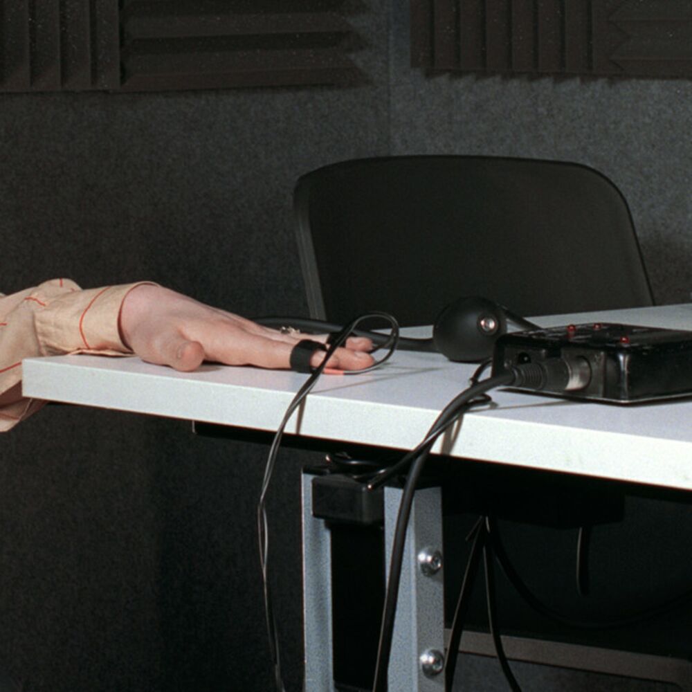 On the cover of her debut album, Martha Skye Murphy sits at a lie detector. In a grey and austere looking room, the chair next to her that should be operated by her interrogator is empty. It is an image, both striking and stark, that encapsulates exactly what’s so engrossing about this extraordinary debut LP – a record that thrives on the push-and-pull between fact and fiction, intimacy and coldness, revelation and secrecy, trust and deception, distance and closeness. Its title, ‘Um’, appears as if a subtitle on a foreign film, implying that it has been translated from another language, and yet that’s not a word at all – a noise without concrete meaning that exists only in the gaps of a sentence.